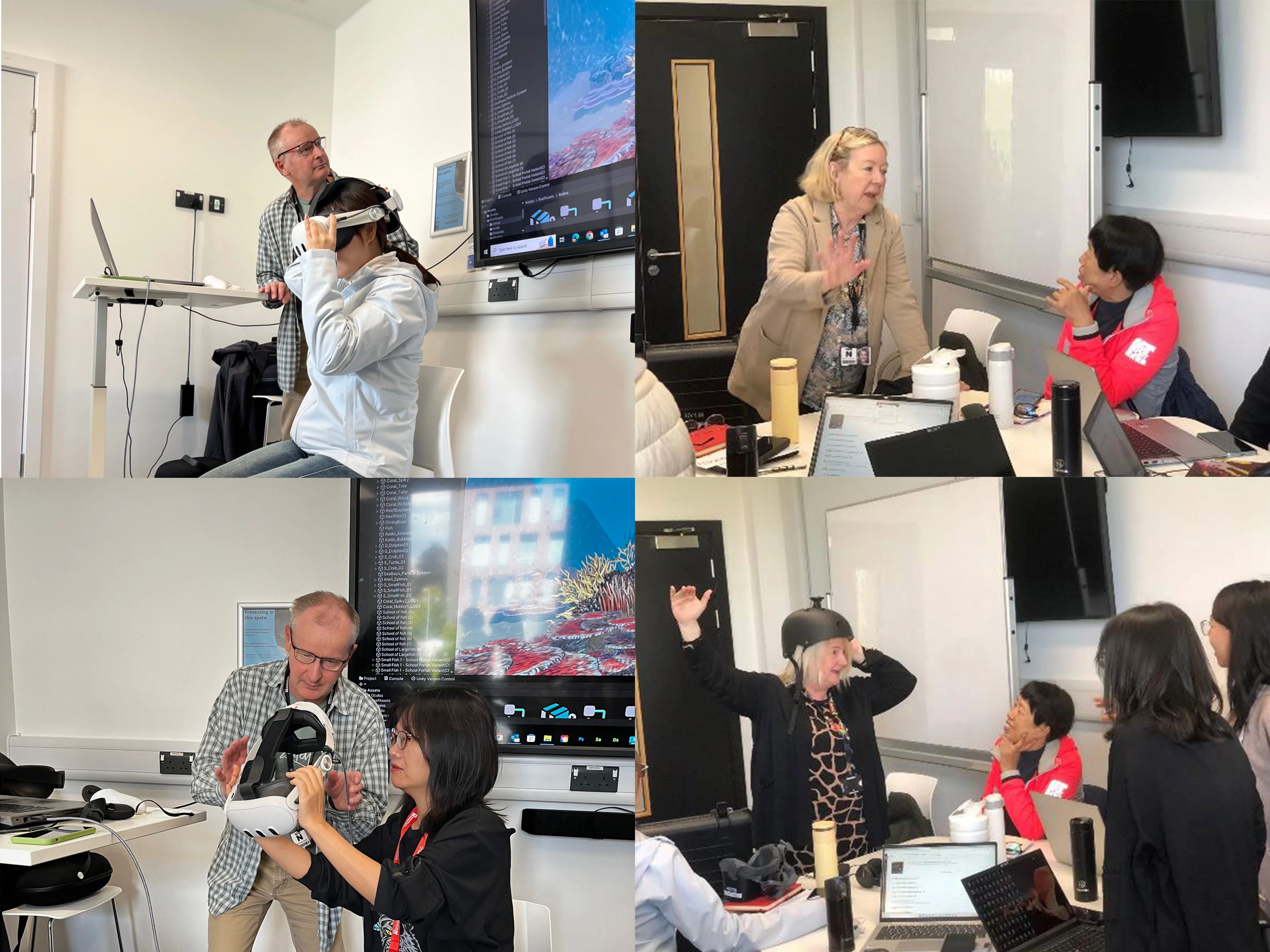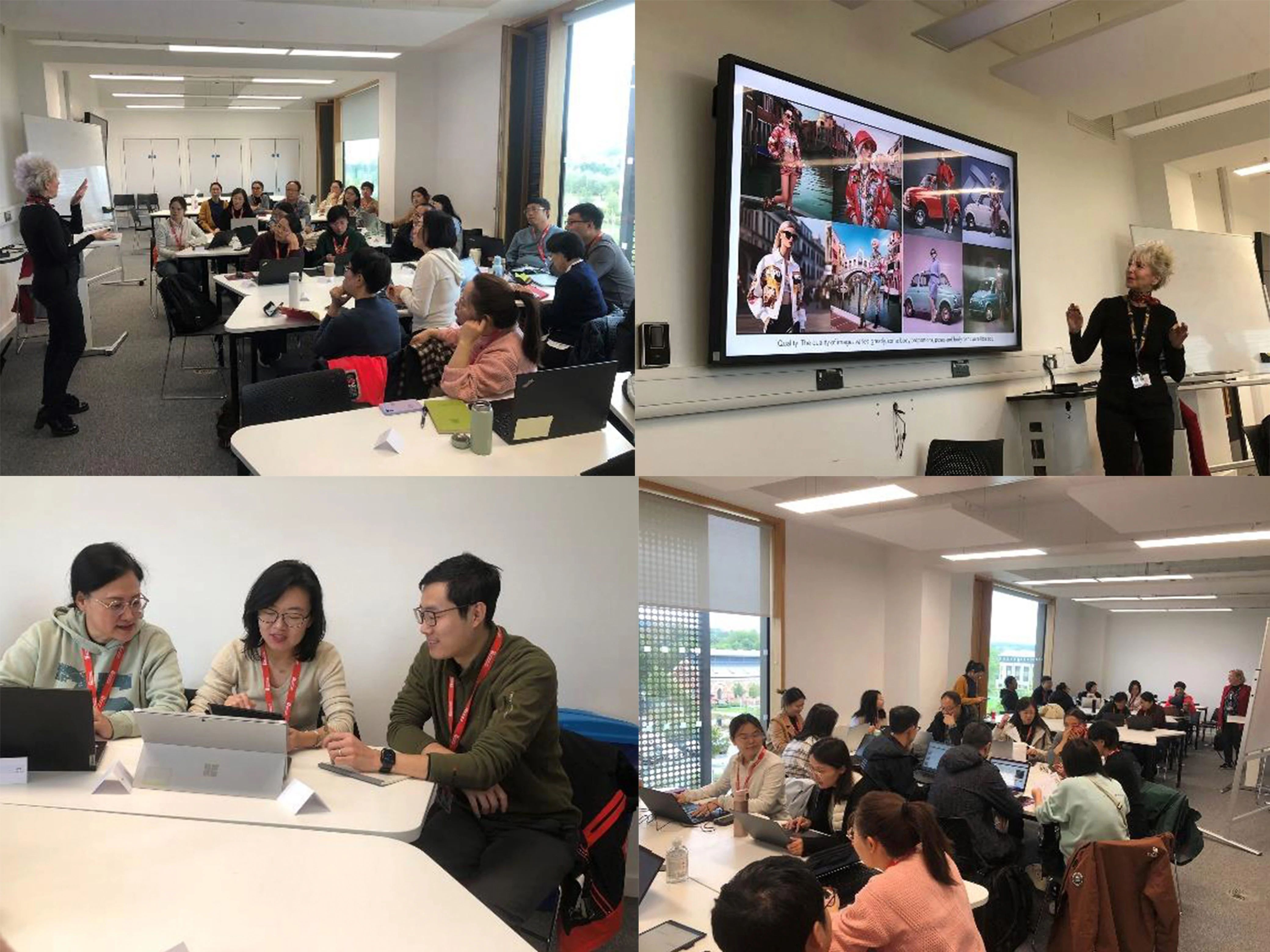 北安普顿大学的游戏设计教授Andrew Debus与数字营销学教授Kardi Somerfield带领教师们走进了虚拟现实和游戏疗愈的世界。通过AR设备的体验,教师们身临其境地感受了商业广告设计中的虚拟现实应用,这种前所未有的沉浸感让他们对学习的互动性和生动性有了全新的认识。
