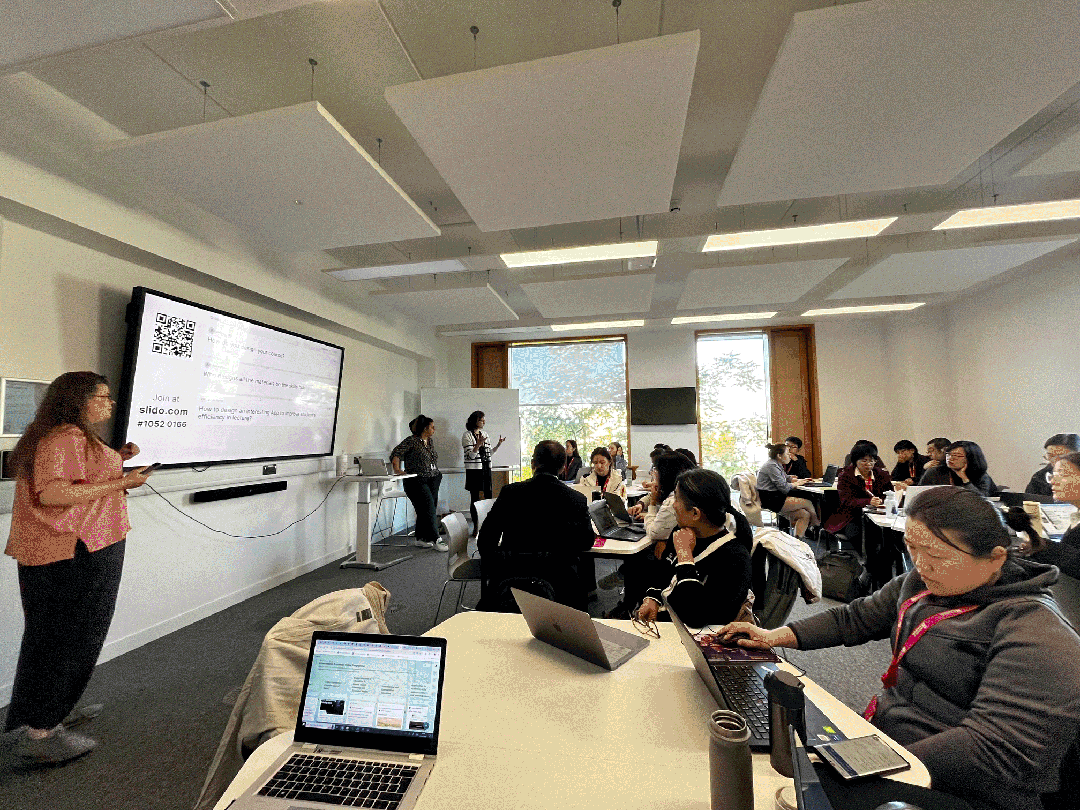 课程中的互动环节鼓励教师们分组探讨这些差异对教育模式的深远影响,并在小组报告中精彩呈现讨论成果,从而有效提升了教师们的学术研究能力与跨文化团队协作能力。