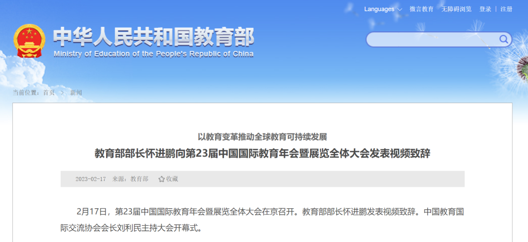 网址:http://www.moe.gov.cn/jyb_xwfb/gzdt_gzdt/moe_1485/202302/t20230217_1045406.html