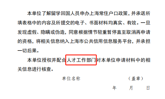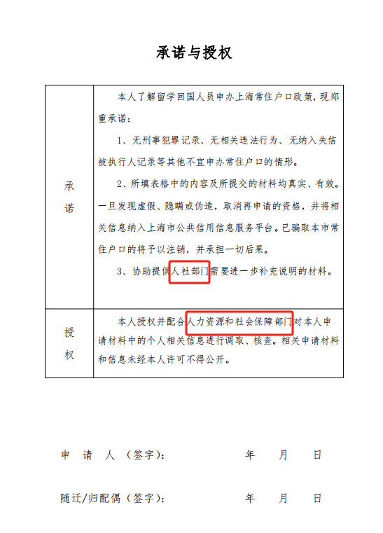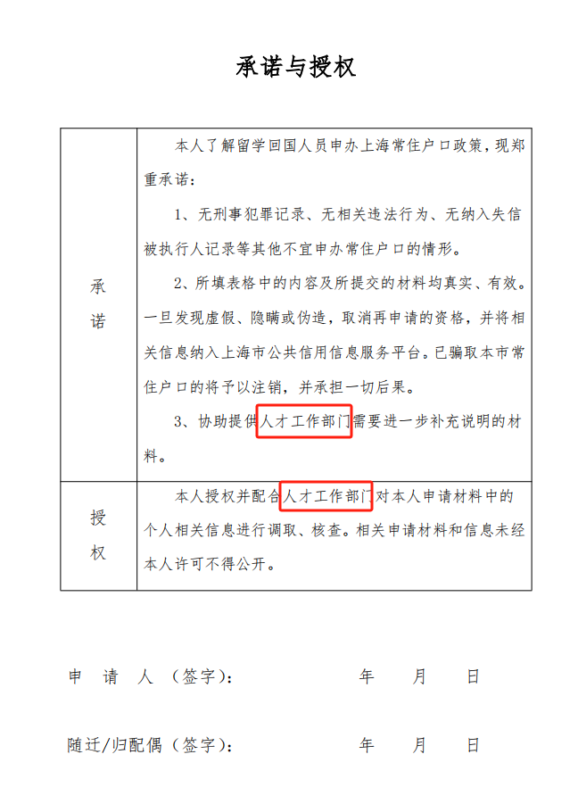 在新版的《承诺与授权》中,原人社部门已更改为人才工作部门。