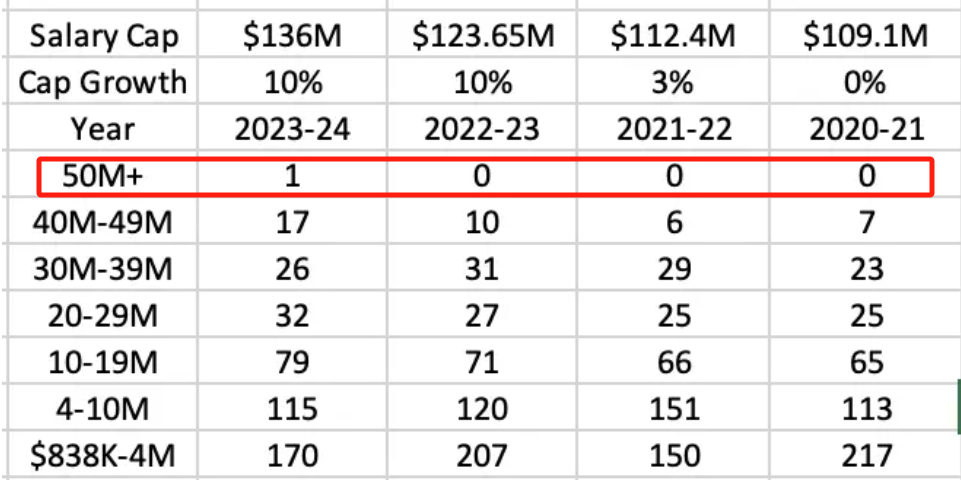 (来源美国薪资专家鲍比-马克斯统计的新赛季联盟薪资状况)