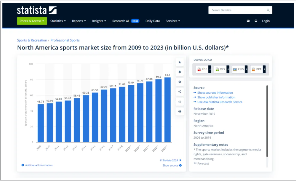 美国体育产业市场也欣欣向荣,美国体育产业的总收入约为800亿美元,体育相关产业收入超过5000亿美元。