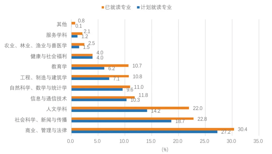 △图5:计划就读及正在(已)就读专业(资料来源:教育部留学服务中心、全球化智库[CCG],2024年计划博彩平台大全人员专题调研、2024年海外留学人员专题调研)
