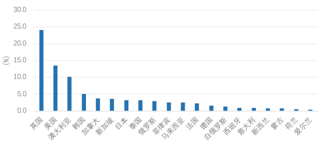 △图3:2024年申请国(境)外学历学位认证人员留学的前20个目的国分布情况(资料来源:教育部留学服务中心,2024年国[境]外学历学位认证数据库)