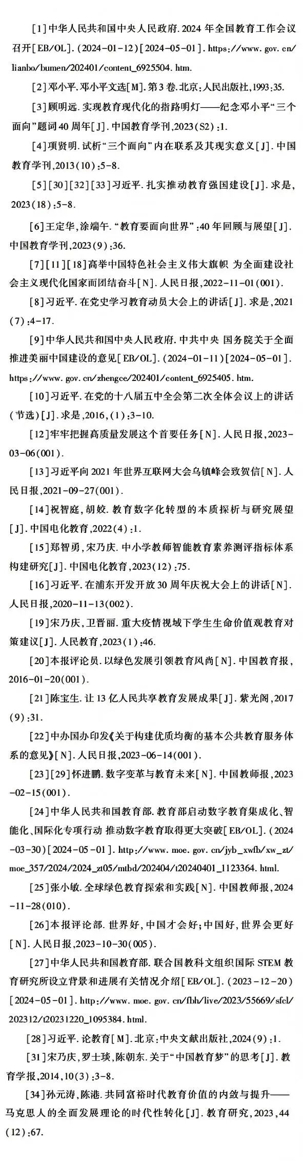 教育“三化”与“三个面向”一脉相承,深刻体现了历史传承性与时代发展性。1983年,邓小平同志为北京景山学校题词“教育要面向现代化,面向世界,面向未来”(即“三个面向”)[2],吹响我国教育迈向现代化的进军号。40年来,“三个面向”指导我国深化教育改革,在推进教育现代化方面取得了巨大进步[3]。“三个面向”是相互关联、辩证统一的有机整体,“面向现代化”是目的和核心,“面向世界”是重要途径,“面向未来”是教育本质特性的必然要求[4]。“三个面向”在不同时期、不同阶段呈现出相应的时代特征与具体要求,这与当时的政治经济社会文化发展水平密不可分。在开启全面建设社会主义现代化国家的新征程中,在加快建设教育强国的康庄大道上,“三个面向”对我国教育改革和发展仍然具有重要的指导意义。