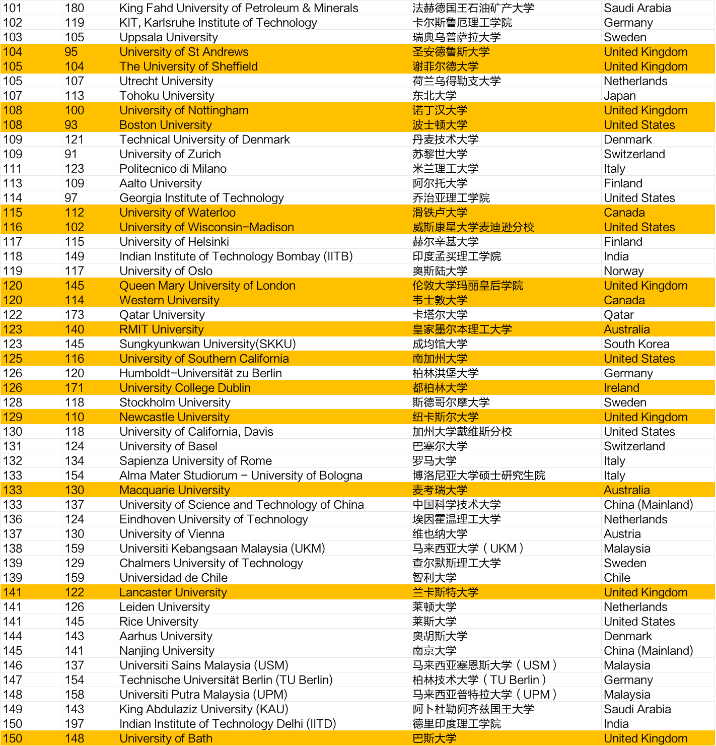 圣安德鲁斯大学和诺丁汉大学被挤出top100以外。