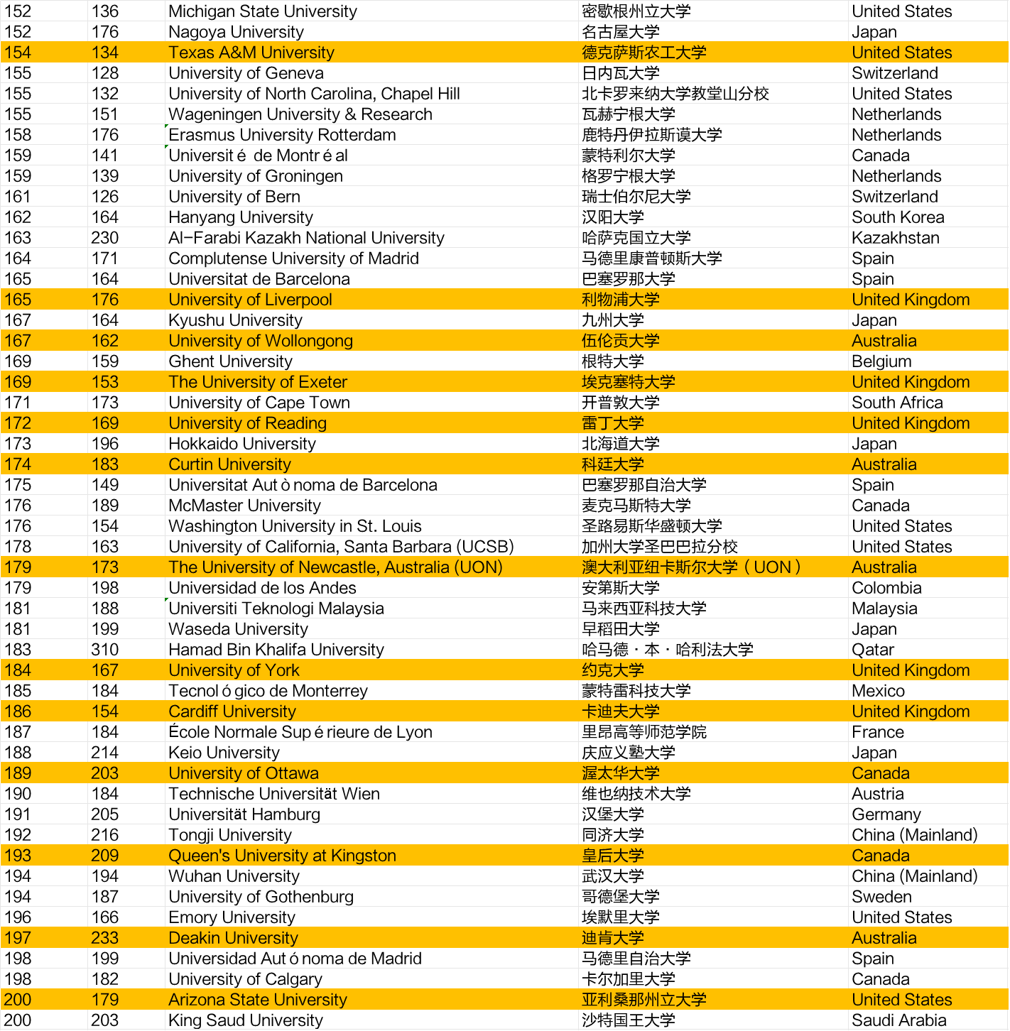 进入前200的中国院校