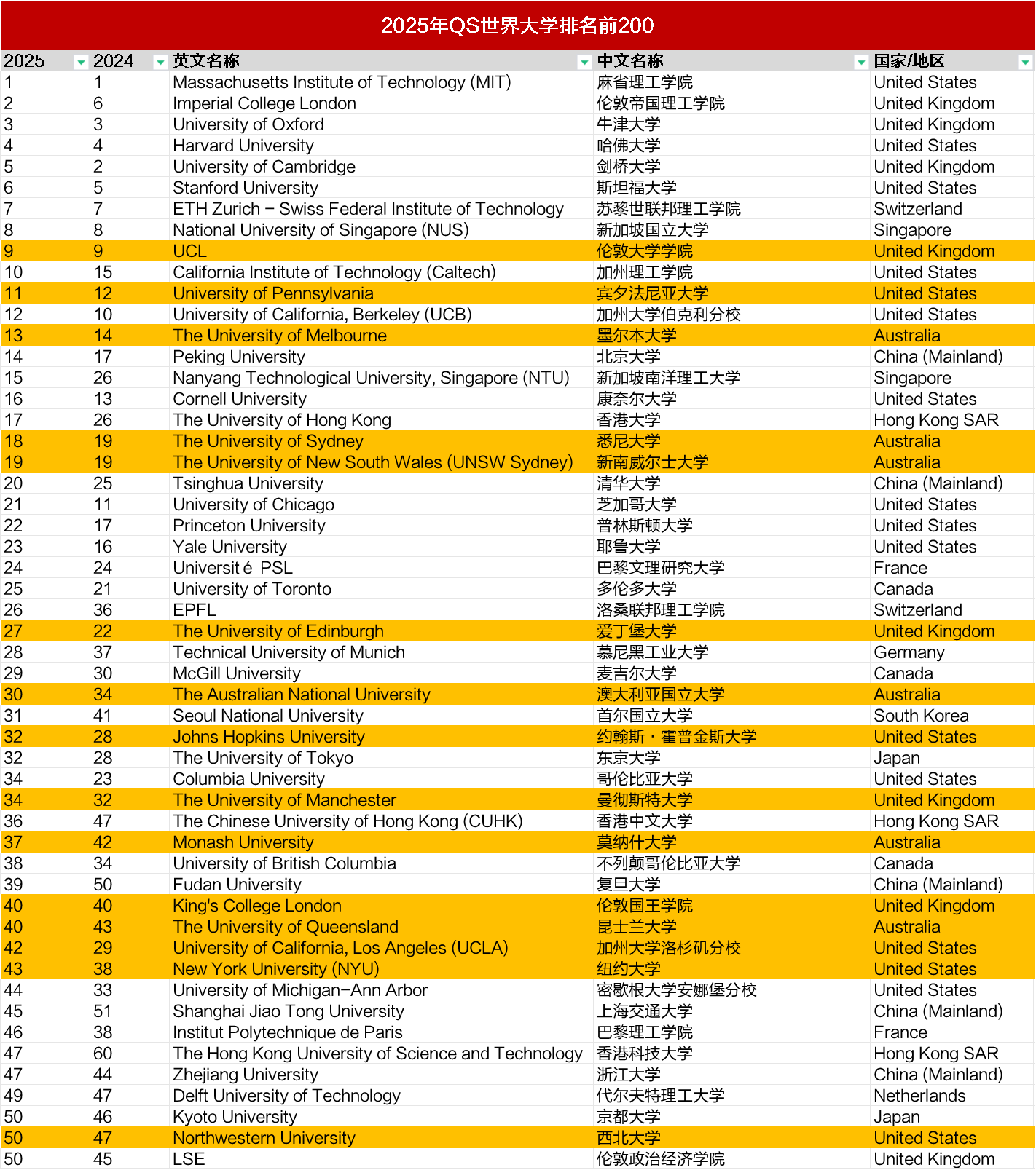 重磅!2025年QS世界大学排名发布!