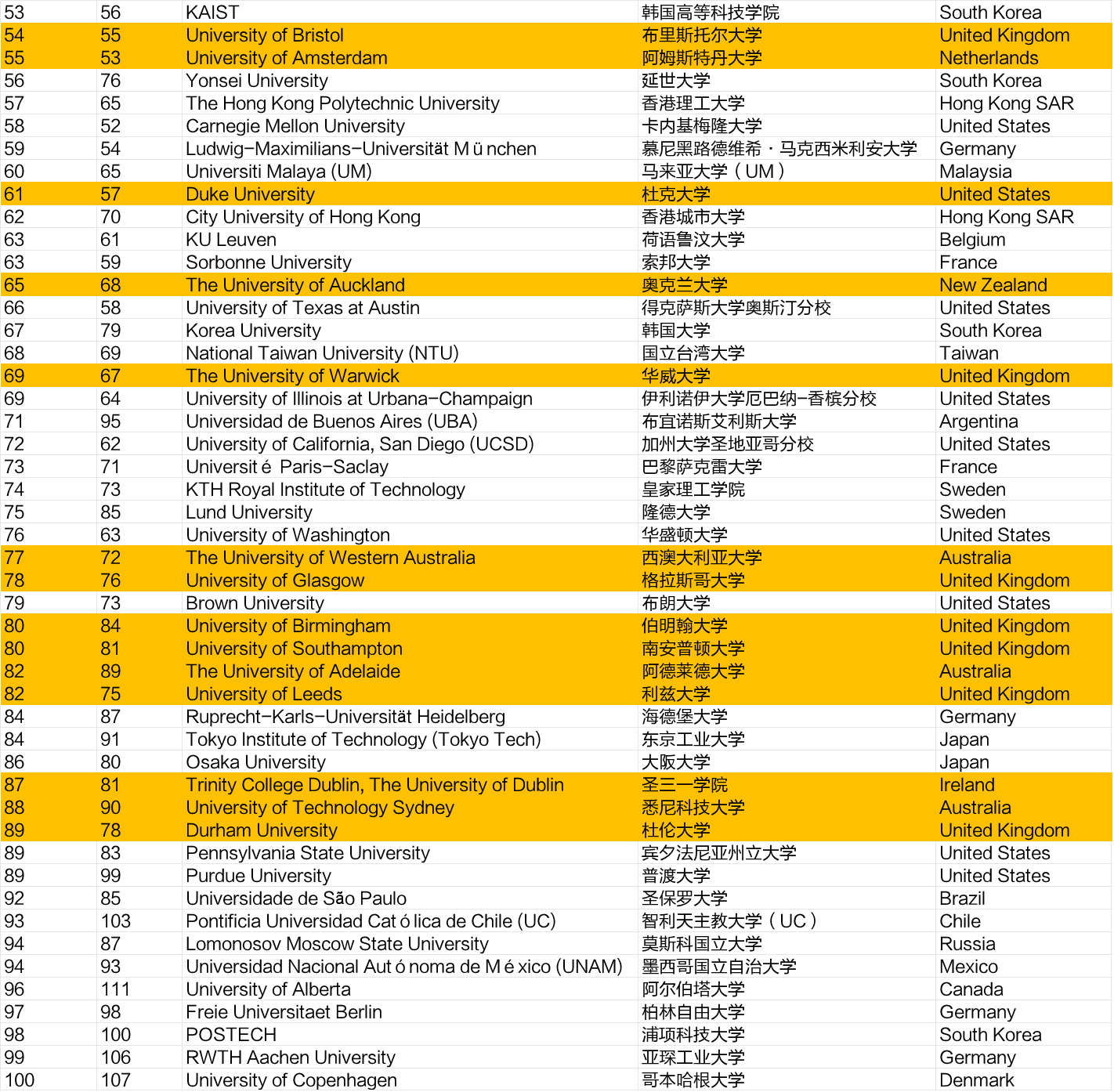 除了新南威尔士大学(与去年持平,第19位)和西澳大学排名有所下降(从72下降至77),其余澳洲学校排名均有所提升。