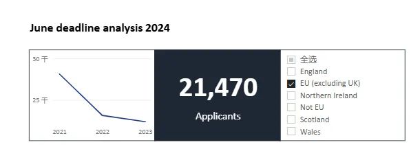 受脱欧的持续影响,欧盟地区的国际申请人数降至21,470人,比上个申请季(22,400人)减少了930人,同比下降约4.15%。