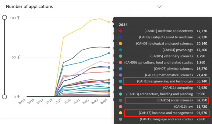 而申请量上升的学科多为理工类专业,学生们更倾向选择实用性强、就业力强的专业: