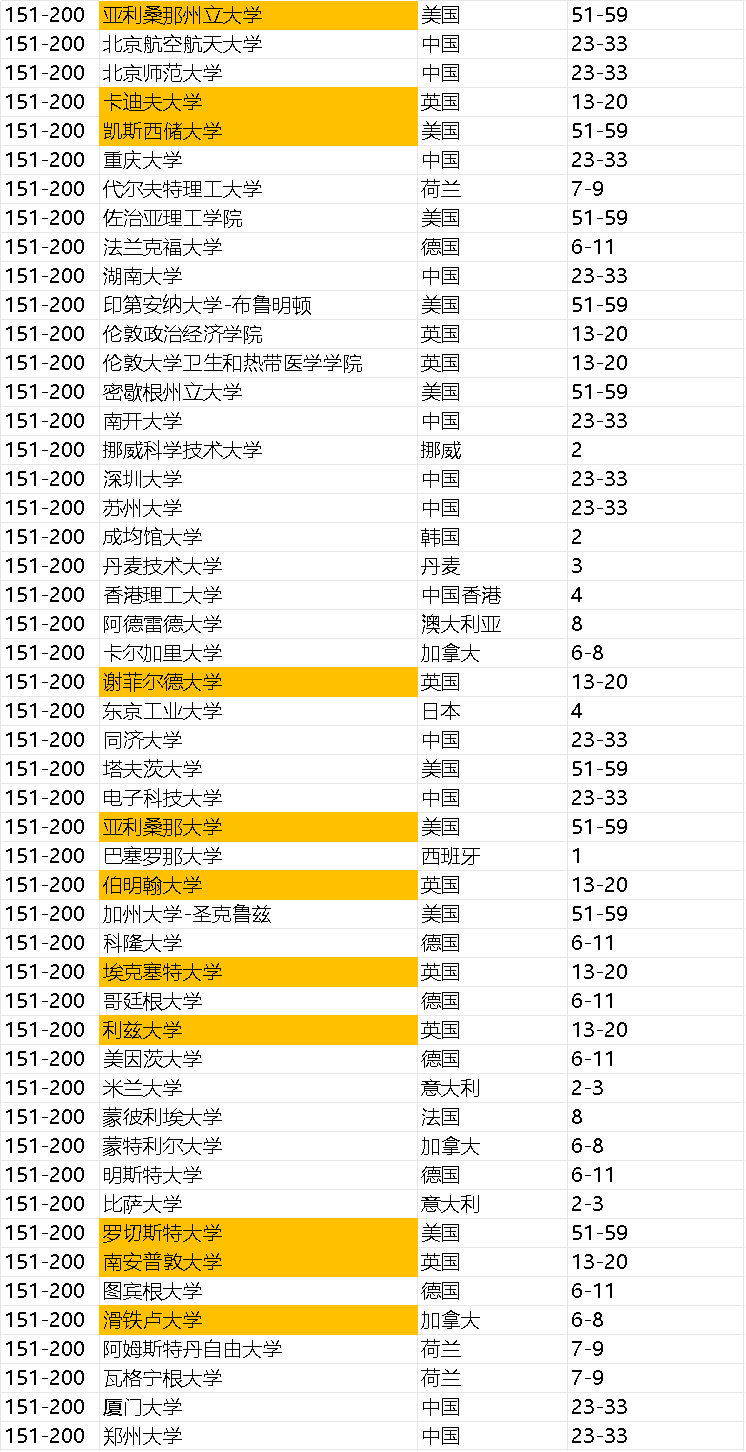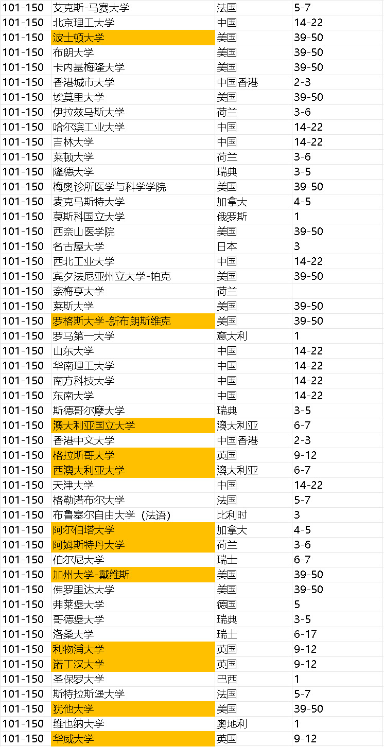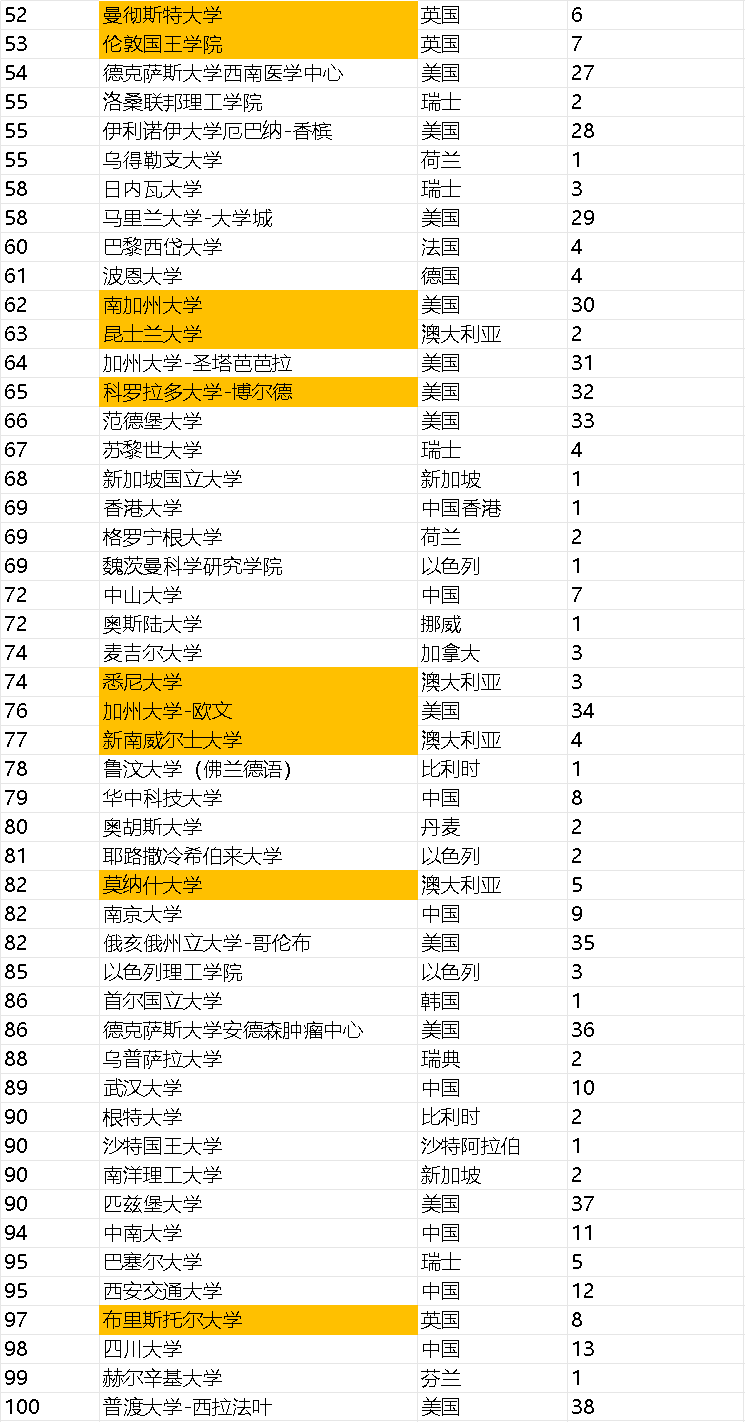 以下是Top10的其他院校排名——