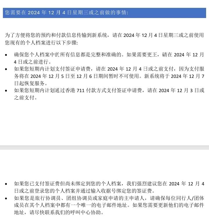 如果在12月4日前已支付签证费但尚未绑定,仍然可以在新系统中通过输入付款收据编号和付款日期来获取收据。