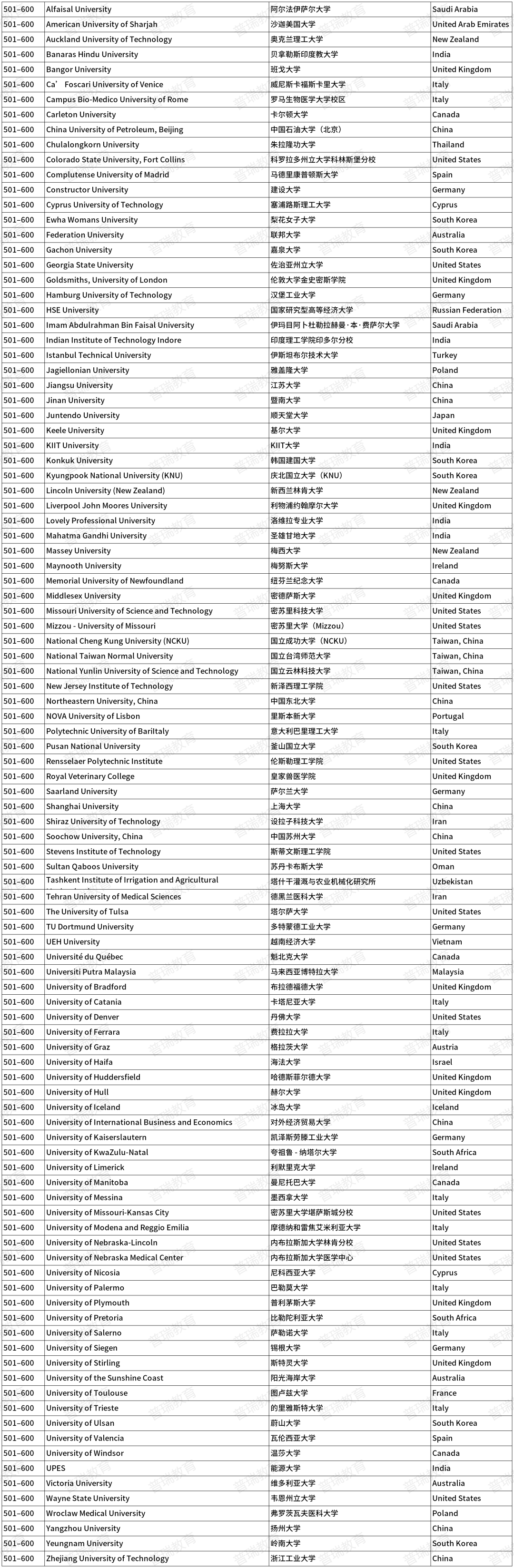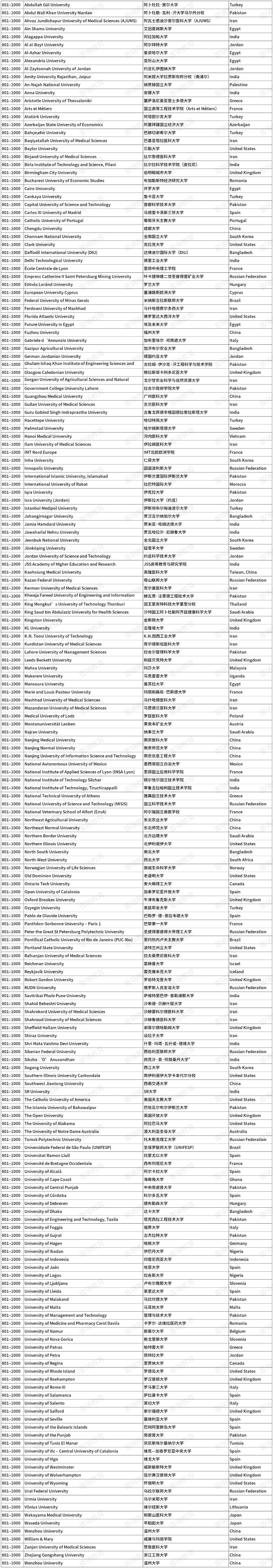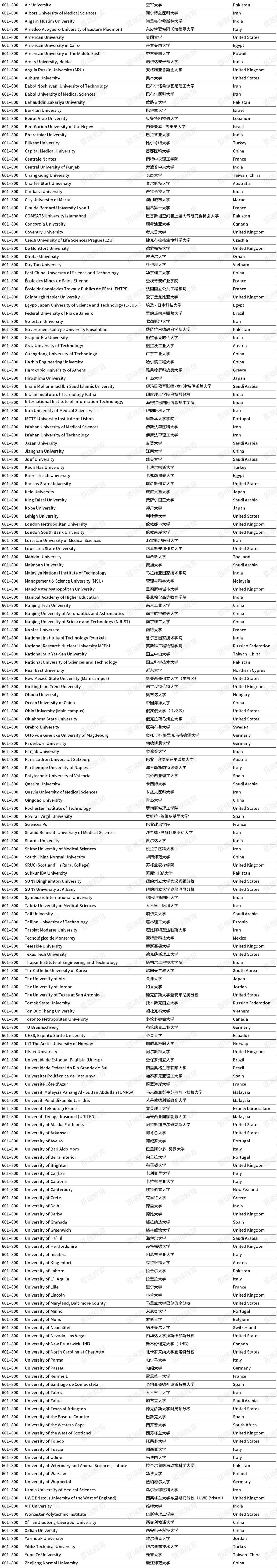 2026泰晤士高等教育世界大学排名(前1000名)