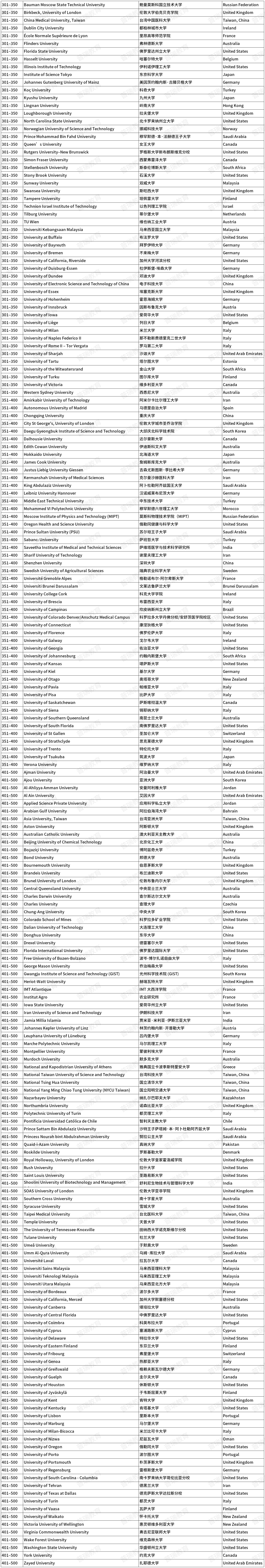 图源泰晤士世界大学排名官微