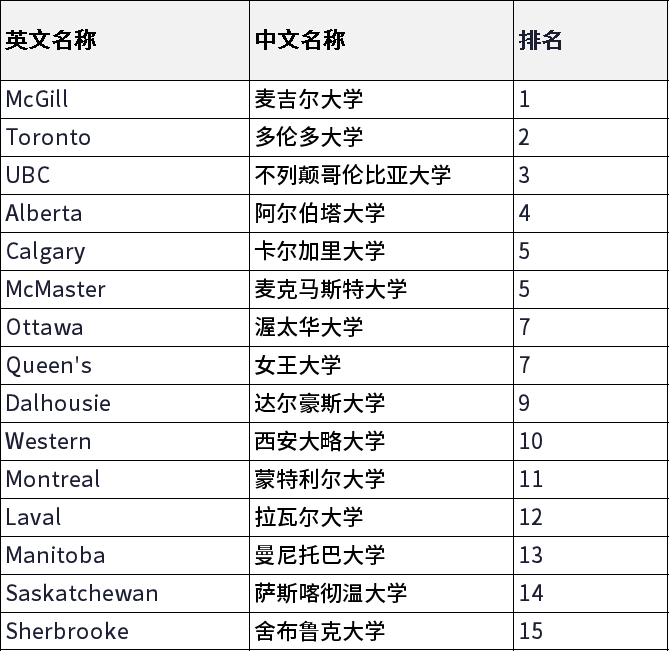 作为加拿大大学最权威的院校榜单,希望各位有留加计划的同学们可以好好参考。